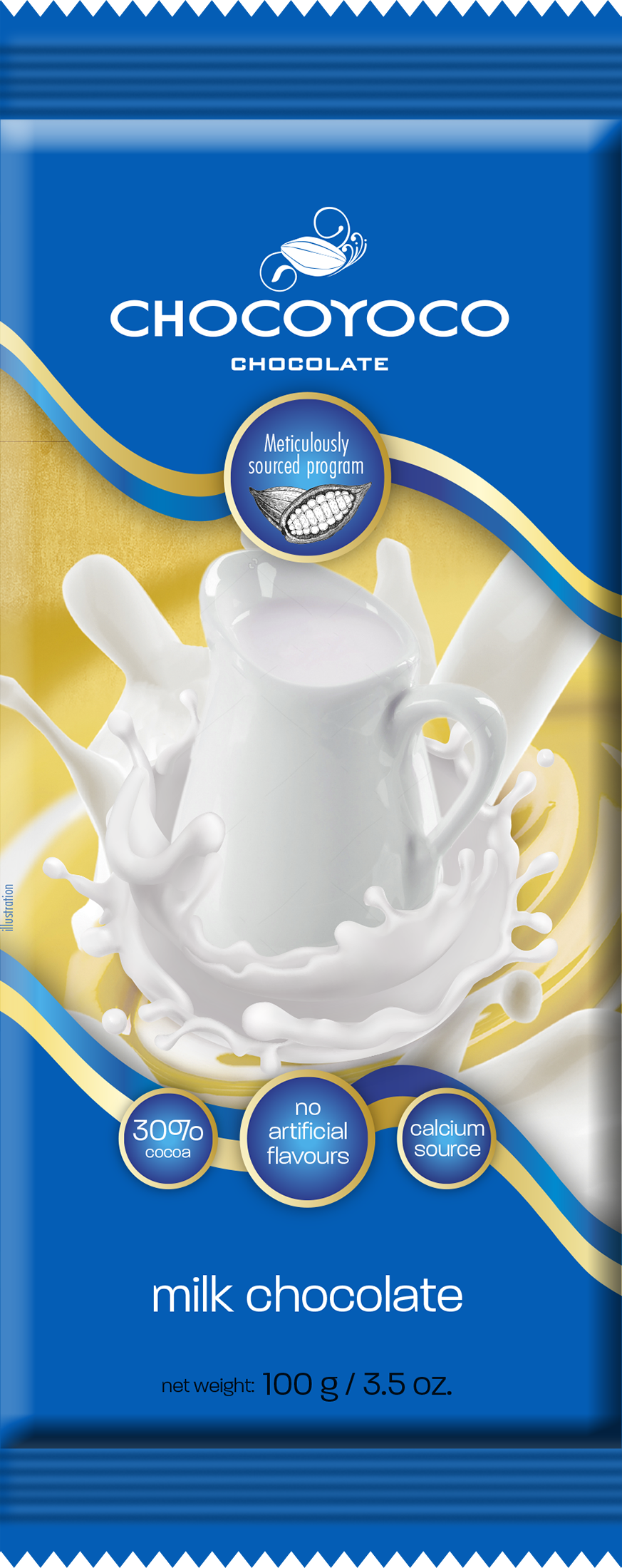 Najwyżej jakości czekolada mleczna Chocoyoco o zawartości kakao min. 30% i zawartości mleka min. 14% z fabryki czekolady Chocomoco. Starannie wyselekcjonowane kakao w oparciu o program Meticulously sourced™, długi proces konszowania oraz opracowany do perfekcji proces temperowania powodują że czekolada rozpływa się w ustach.