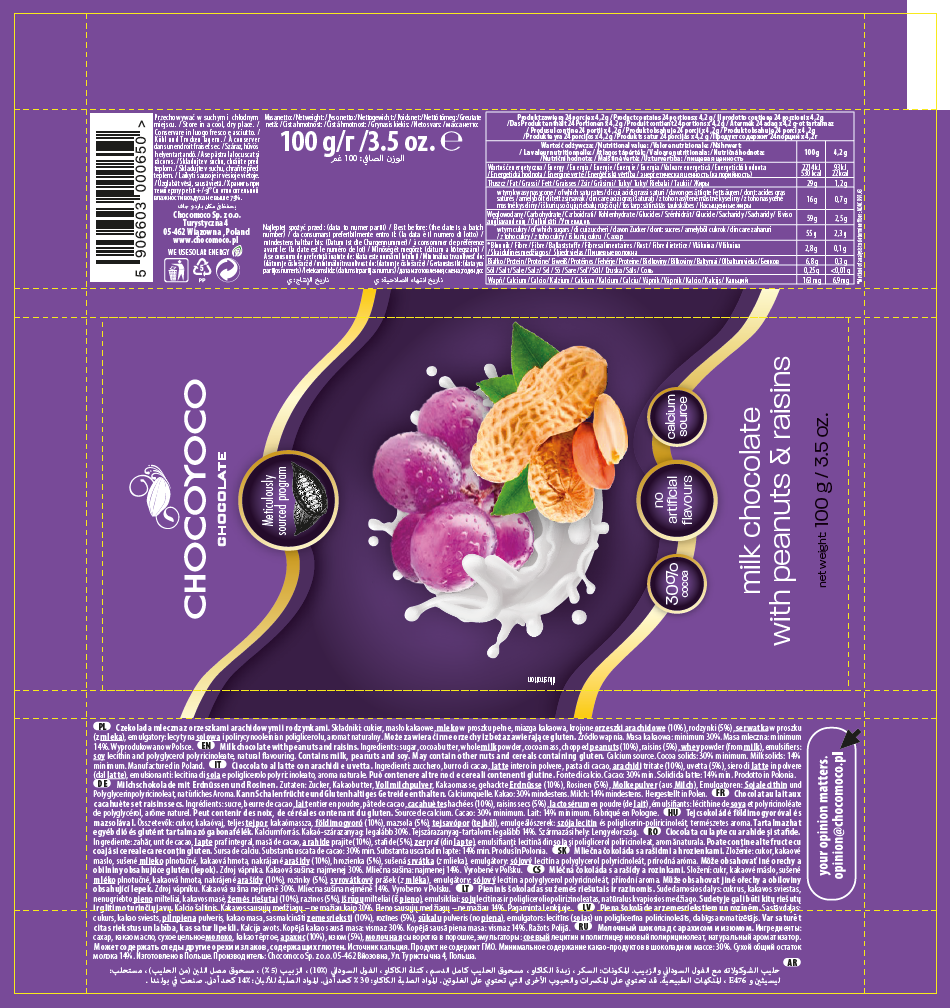 Chocoyoco czekolada mleczna z orzeszkami ziemnymi i rodzynkami 100g
