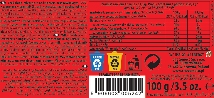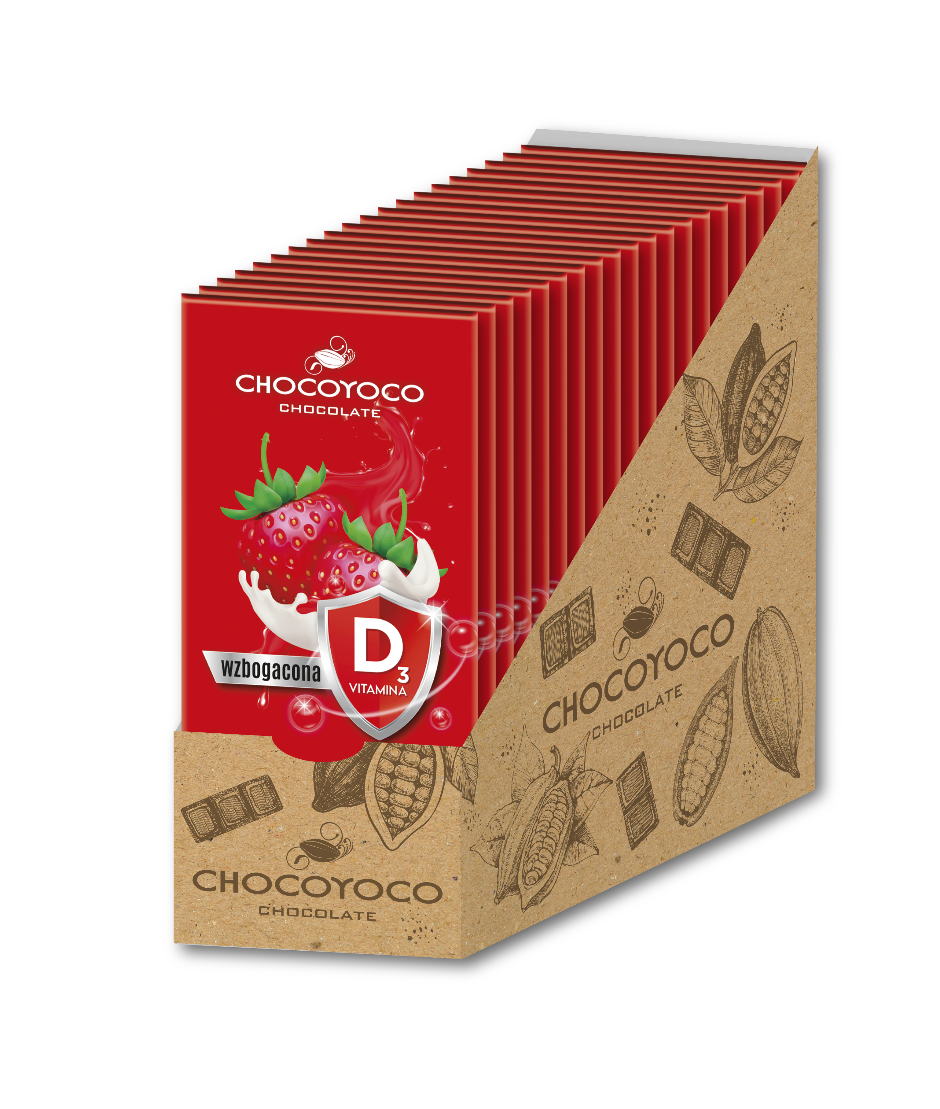 Chocoyoco czekolada nadziewana truskawkowa z witaminą D